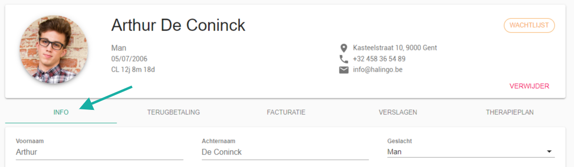 1. Selecteer het tabblad info. En ga naar het deel medische info.